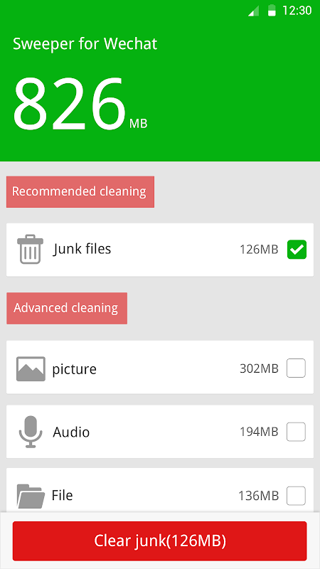 Sweep junk, residual and cache files to free up storage. Boosts speed and improve the performance of your phone. Keep your phone clean and fast with Sweeper for Wechat.