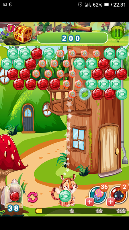 Little Tiger to help you to blow bubbles by shooting bubble matches the colors of bubbles,