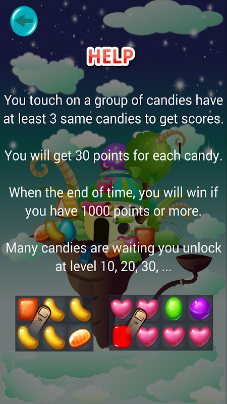 The rule of this game are easy: click on groups of 3 or more candies of the same color to blast them. Work quickly to keep the three stars in your achievement board. Try to touch as much as possible to reach the target scores and complete the level.