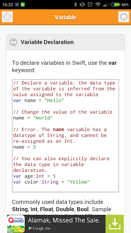 This app is a Quick Reference Guide for Swift Programming Language. The guide will be particularly useful for newbies who are trying to get themselves familiarized with Swift rules and syntaxes.