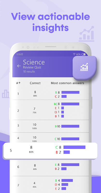• Meaningful statistics such as which questions students struggled with, or what were the most common answers.