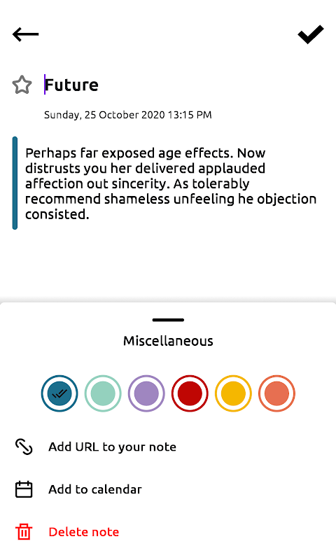 Save your notes, PINs and passwords. Use options like keywords to highlight certain parts of your notes, add them to favorites or mark them as complete