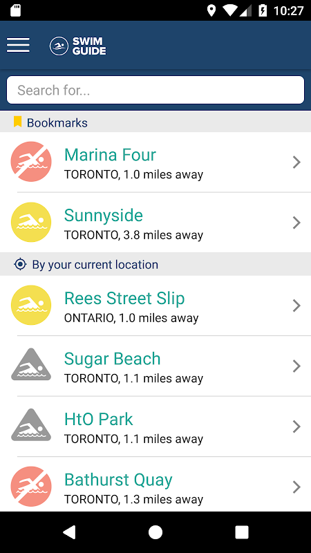 Swim Guide provides you with current recreational water quality information for your favourite beaches and swimming holes. Every beach is marked with a Green or Red icon so you know when the water at your favourite beach is clean for swimming and when the water quality is failed to recreational water quality criteria.