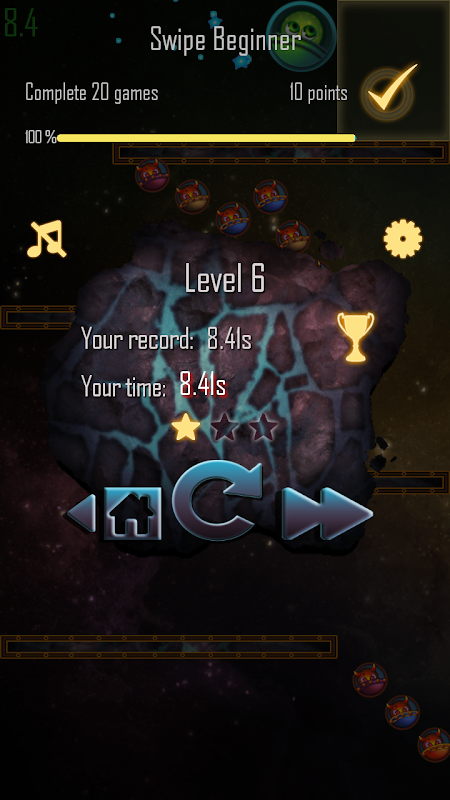 In Puzzle levels, you should lead your starship towards the finish line, as fast as possible.