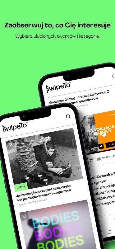 SwipeTo is an application where you will find everything important here and now. News. Pop culture. Lifestyle. Music. Movies. TV series. Sport. Technology. Gaming. Ecology. Social Affairs. Everything in the form that suits you best. Do you like to listen? A dozen or so podcasts are waiting for you. Do you prefer to read? We have tons of articles, columns, analyzes and reviews. Are you a visual learner? Watch our video materials. Lots of content, no ads. Only here and now. Download and check.