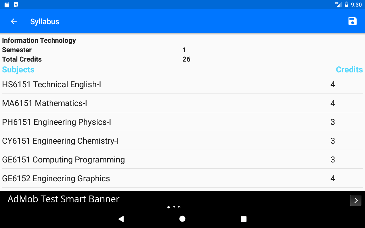 This is not an official android application of Anna University and data provides here was not provided by me. It was taken from the official website http://www.annauniv.edu/academic_courses/index.html. It may have some errors, because I have to add it manually.