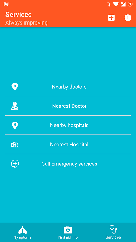 Check offline Symptoms & First Aid, Locate doctors, hospitals and call emergency