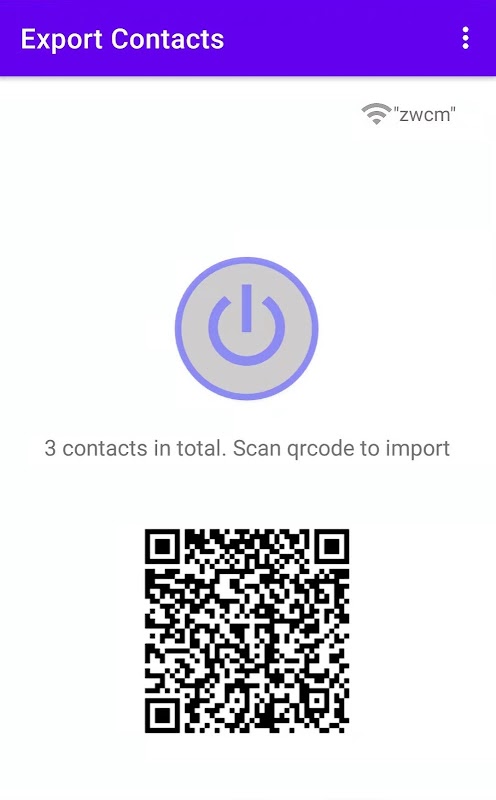 2. on your old phone, click the round button to share your contact information. Qrcode will be displayed if successful.