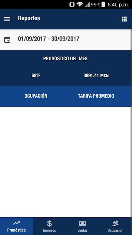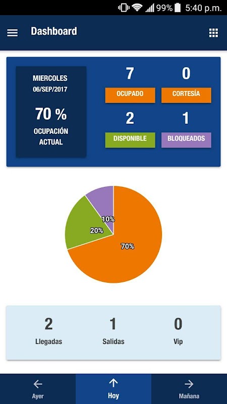 - Visualize through graphs and statistics the current situation of the hotel, the total occupancy per day, the income by date of stay and the expected sales amount per day.