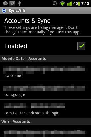 * Automatically disable/enable the synchronisation of accounts if a mobile/wifi connection is detected.