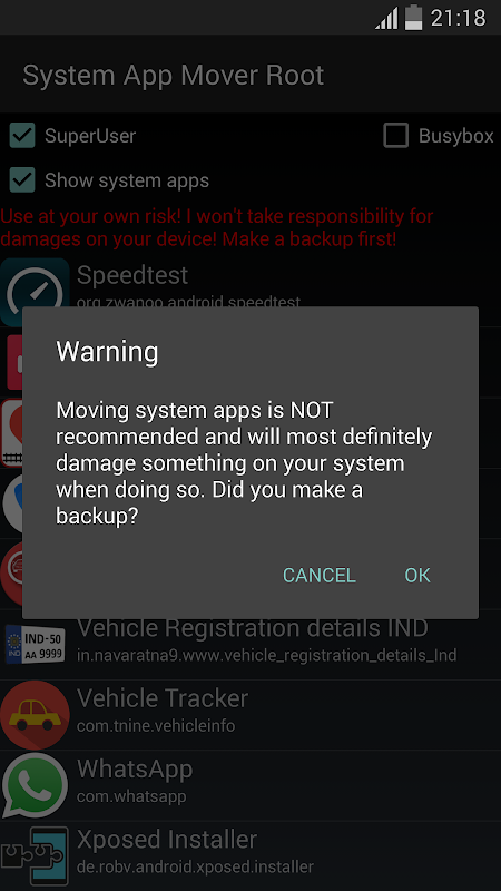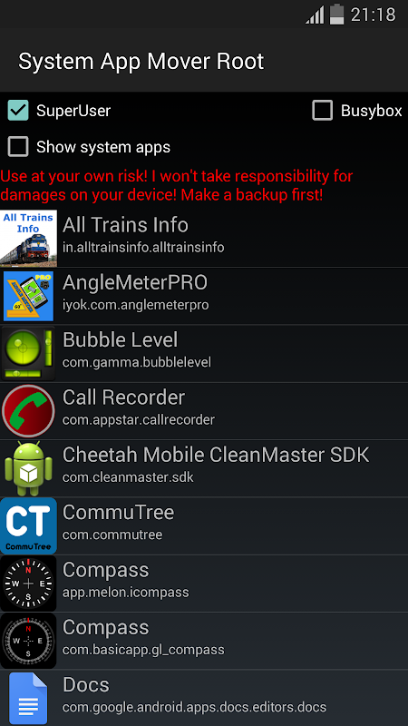 The app might not work on custom ROMs! On Android 5.0 and newer, system apps can not be converted to normal apps with this app! Feel free to contribute to the GitHub project if you know a fix for this.