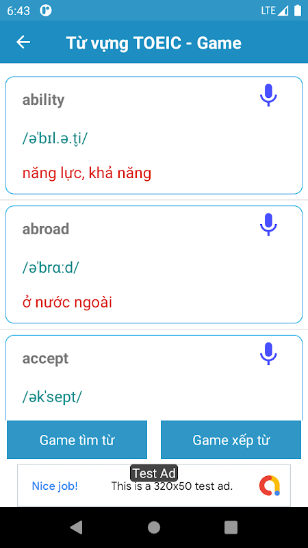 The offline English - Vietnamese dictionary helps you look up vocabulary anytime, anywhere without an internet connection, with about 400,000 words in all fields and specialties but very compact and does not take much space of the device. In addition to looking up the dictionary, this English dictionary application also helps you quickly memorize vocabulary in a group of important words that are frequently used daily. You will remember quickly and remember vocabulary for a long time while playing games - games: word search games, word matching games included in the application. The group of common words is divided into: verbs, nouns, common adjectives, TOEIC vocabulary, TOEFL awkward words and IELTS vocabulary to help you not only memorize vocabulary but also prepare for English exams. . In addition, this Offline English - Vietnamese Dictionary application also provides you with a list of English idioms with Vietnamese translation and transcription and pronunciation.