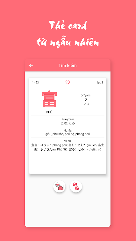 ➢ Look up kanji by inputting the pronunciation according to onyomi, kunyomi and Sino-Vietnamese meaning