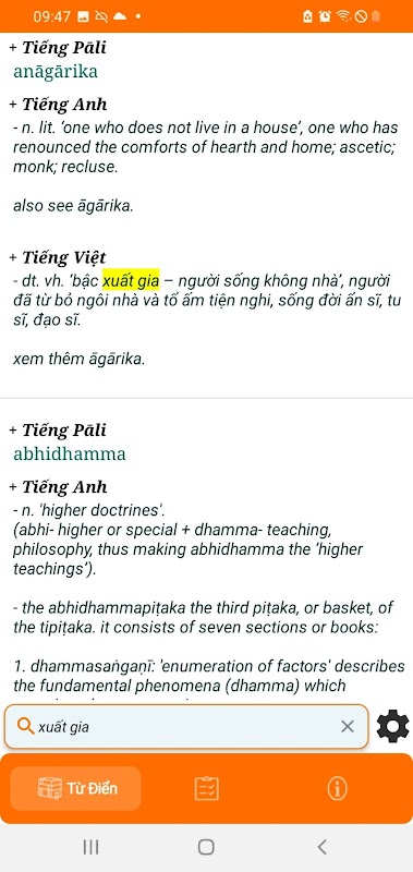 + Help monks and Buddhists quickly look up Pāḷi words or their respective English and Vietnamese meanings.