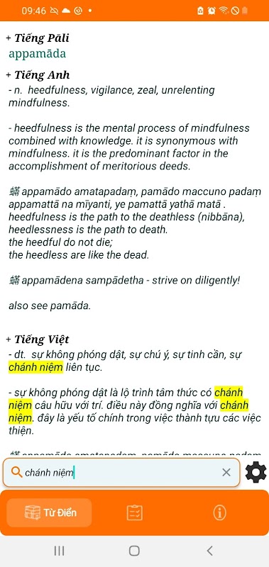 + Search by typing the word Pāḷi or English, Vietnamese.