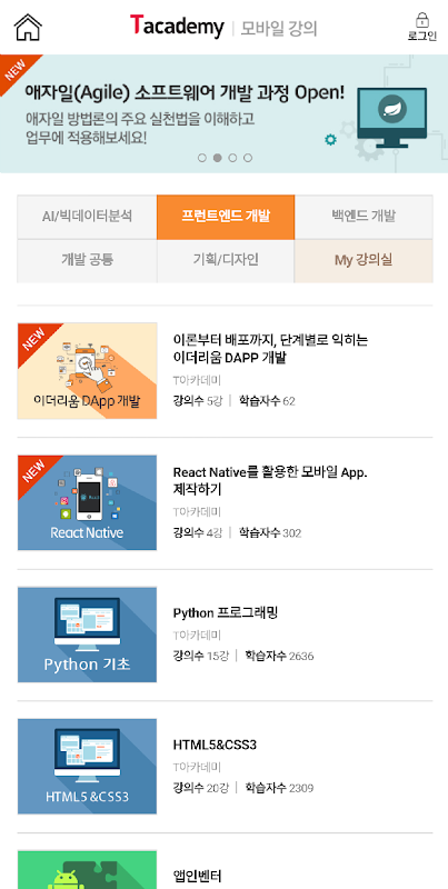 You can learn a variety of online lectures in IT such as talk-on, AI, and algorithms on your smartphone anytime and anywhere.
