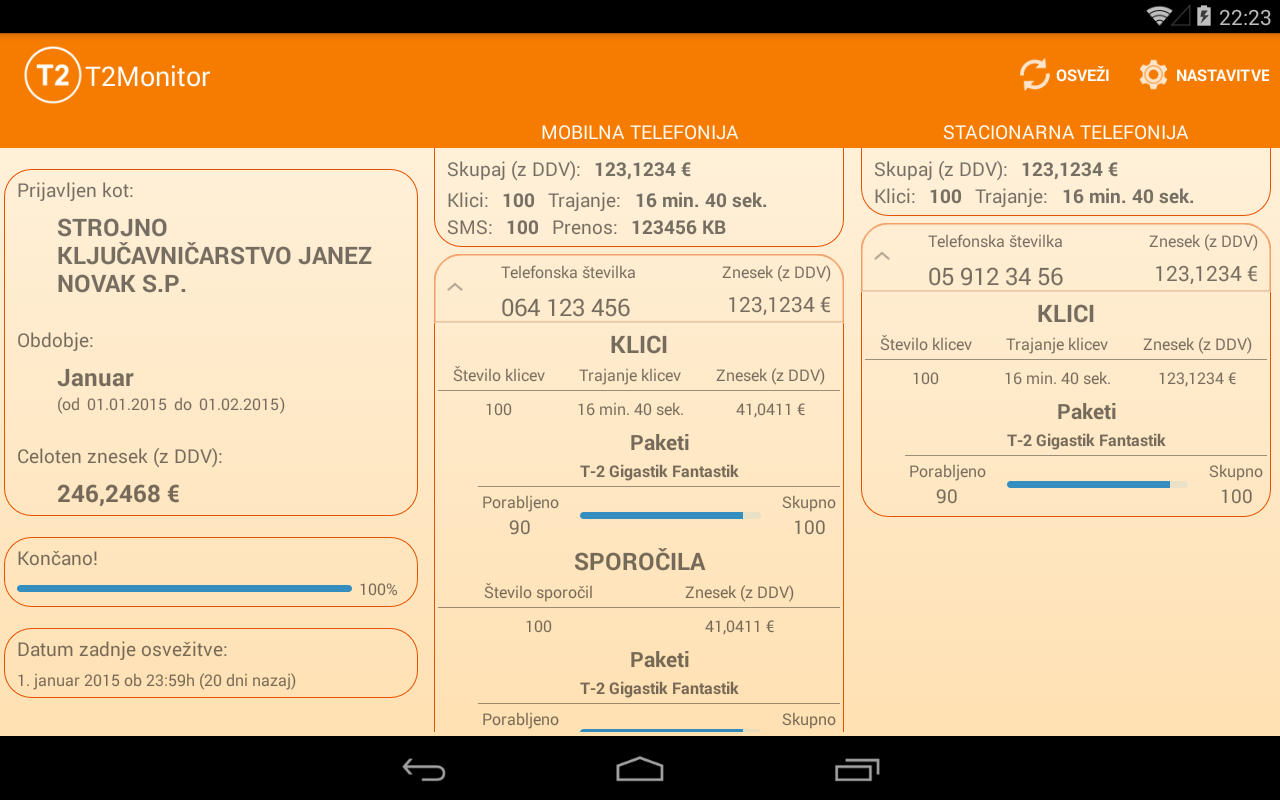 Informacije o posamezni telefonski številki se nalagajo sproti (dinamično), tako lahko že kar takoj preglejujete porabo in ne rabite čakat, da se zaključi nalaganje podatkov.