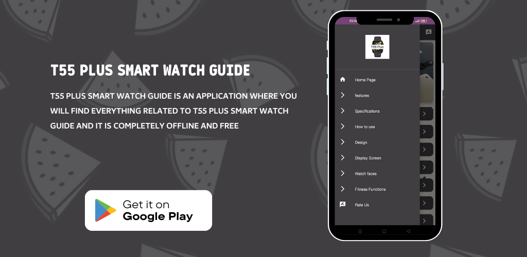 Welcome to the T55 Smart Watch Guide app! This app provides you with a wealth of information about the T55 smartwatch.