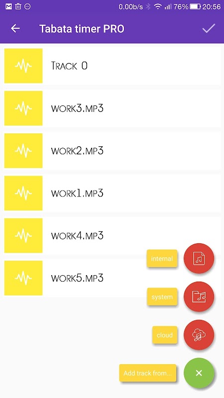 In the new version of the Interval Workout Timer with Music, you can not only choose a melody for workout or rest but also create playlists. You can choose from the built-in music collection, your favorite music saved on your phone, and even download your favorite tracks from our server.