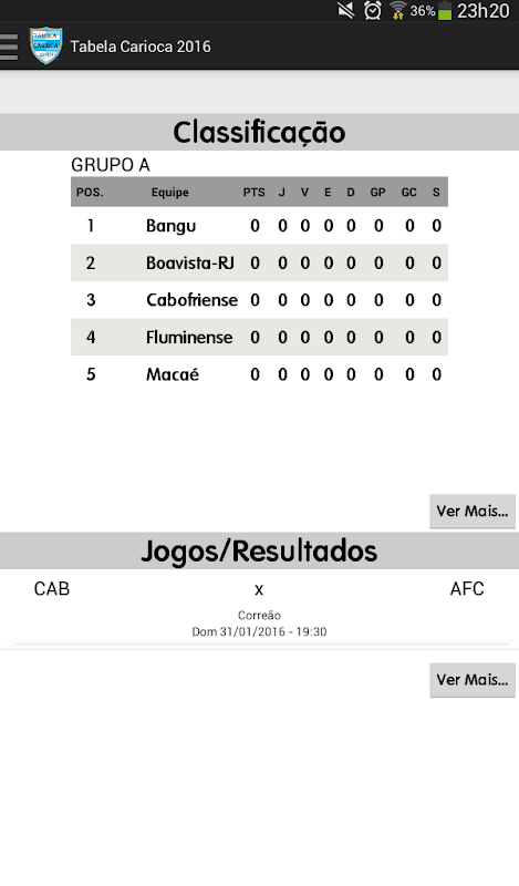 Fique por dentro dos resultados, da classificação e dos jogos em tempo real do campeonato carioca de 2016.