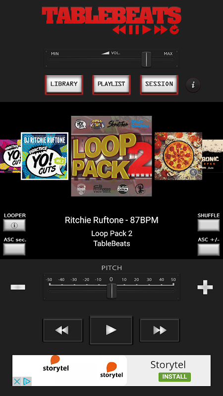 TableBeats is a looper player app. The ultimate practice tool, with over 5000 dope beats, for skratch djs, emcees or any instrument. Plug your device into your sound system and get busy with it! Choose from a wide range of various styles of beats and tempo from 400+ loopers by 600+ producers & DJs from all over the world.