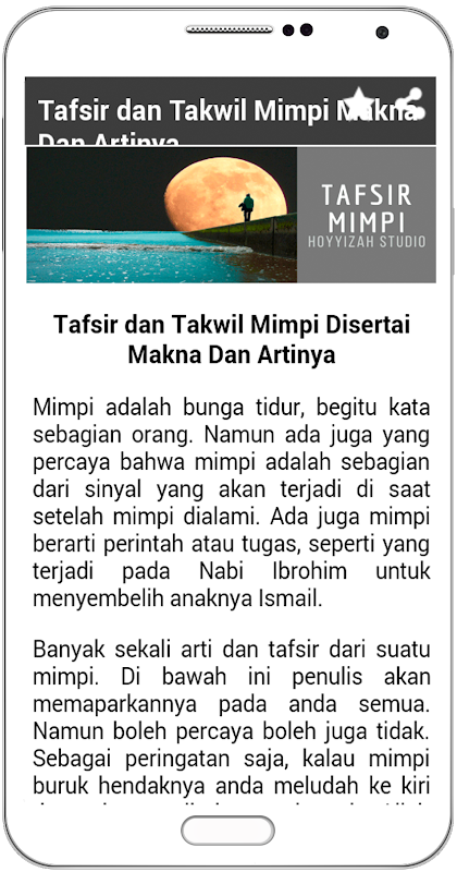 In the application of this dream interpretation you will find a variety of dream that is often experienced by many people. Perhaps based on experience of many people that there arises a sense and dream interpretation. Islamic dream interpretation and the interpretation mimpir the view of western tokok also presented in this application.
