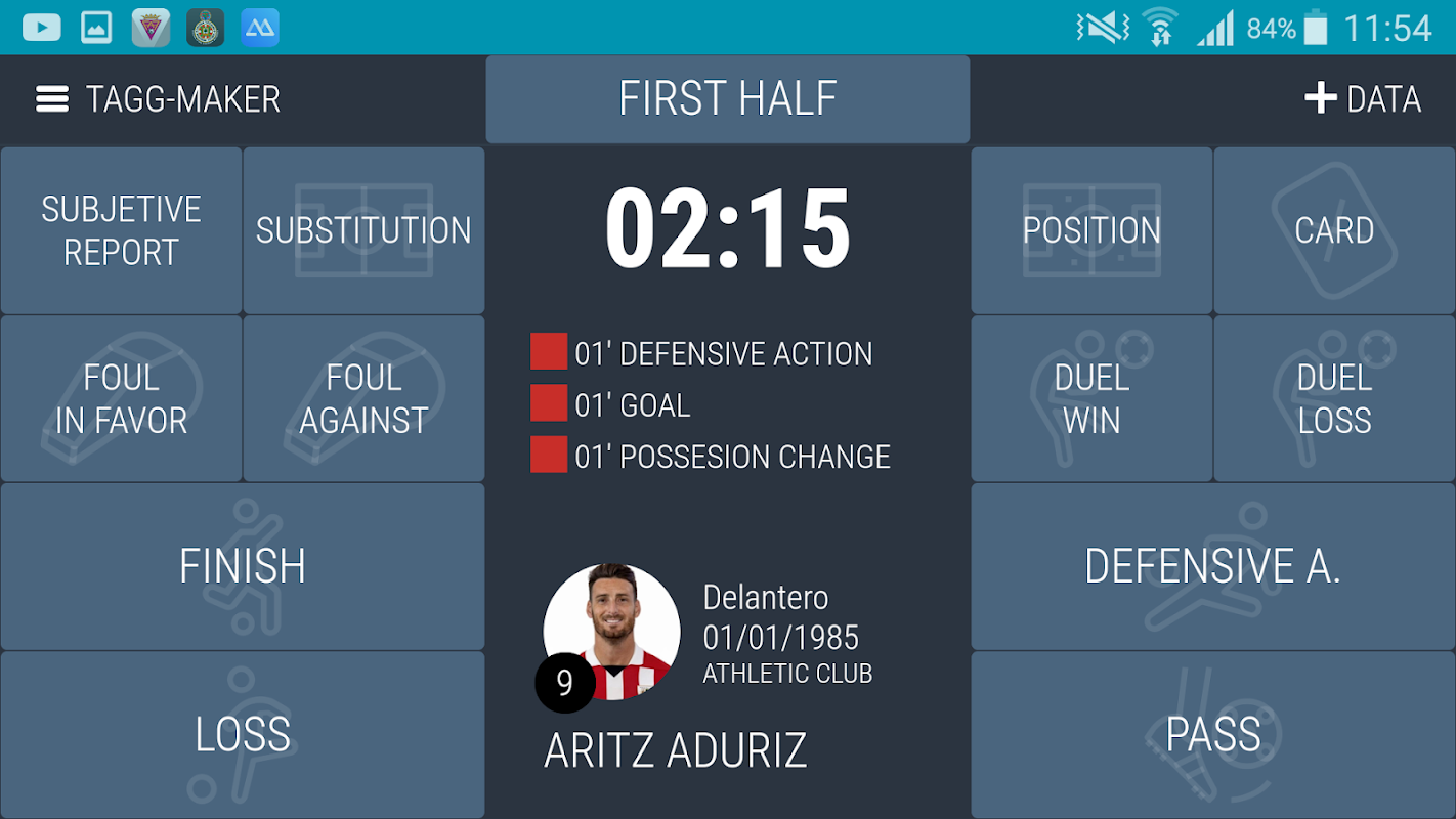 It allows to collect in an easy and fast way all the events and game actions of the football matches, as well as to make a complete analysis of them.