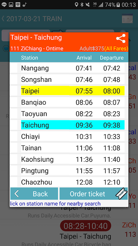 - You can share the train timetable to a friend to his(her) LINE chat or EMAIL