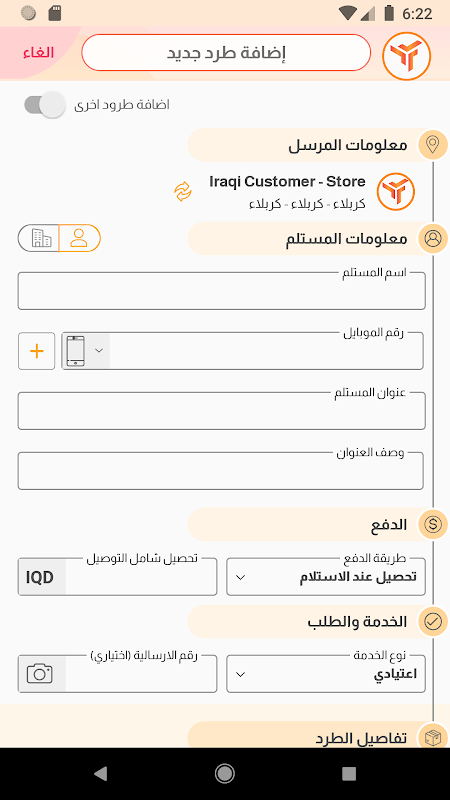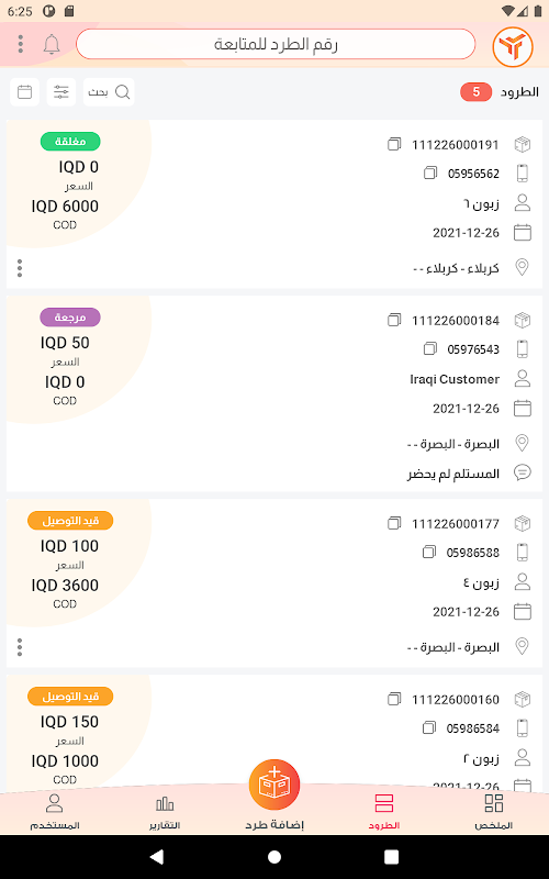 يتيح التطبيق لزبائن الشركة إدارة ومتابعة الطرود الخاصة بهم من لحظة اضافتها على النظام ولغاية تسليمها، بالإضافة لإدارة ومتابعة التحصيلات المالية وحالاتها لتسهيل متابعتها مع الشركة.