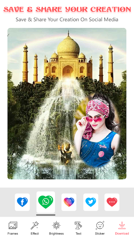 ❖ TajMahal photo editor in which you will now be able to cherish memorable moments you have spent with your loved ones forever.