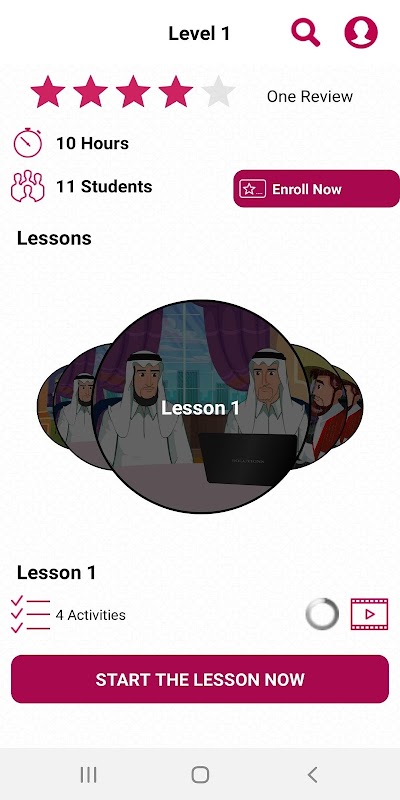 This application is characterized by a non-traditional style, designed by experts to be a qualitative change in teaching Arabic language, and it enables the user to learn different skills such as listening, speaking, reading and writing in Arabic.