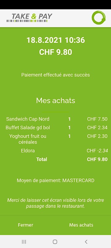 All you have to do is scan the barcodes of the items or the QR codes provided. You then pay using the app, either with your badge balance, or by credit card.