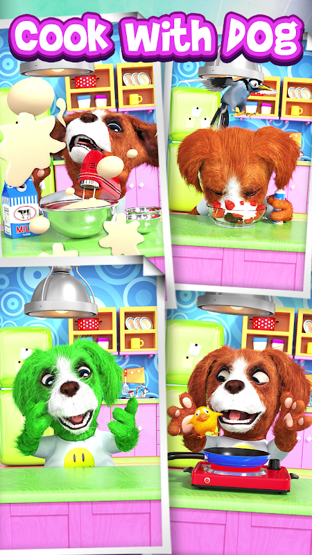 Talking Dog is funny app with option of live wallpaper. The dog repeats everything you say in a funny way. The dog is very talented. Talking Dog plays beautiful music on the instruments and funny dances! Dog plays fantastic: violin, piano, drums and more. Dog also sings very well! See what funny doing in the kitchen when cooking pasta, scrambled eggs and many more. Dog can be also your companion when you are eating and brushing your teeth. At night (after 8 pm), Dog sleeps and snores. If you like Talking Dog, you can set him as a wallpaper.