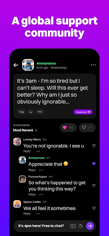 + 24/7 Community Support – Someone is always here to listen and connect.