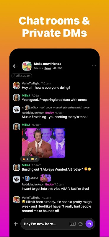 + Chat Your Way – Private messages, group chats, and public posts let you connect however you like.