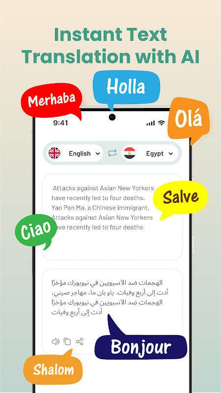 Get instant real-time translations with our AI Translator! Easily translate any language. Whether you're a student, tutor, businessperson, or traveler, our language translator supports 100 languages and helps enhance your vocabulary. Use the built-in dictionary to improve your language skills and connect with the world effortlessly. Say goodbye to communication barriers now!