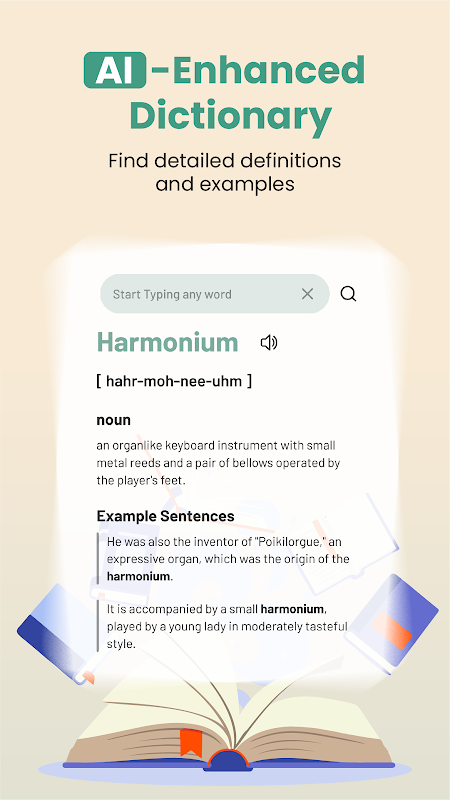 ◾ Instant Dictionary Feature: Enter a word or record your voice to quickly access meanings.