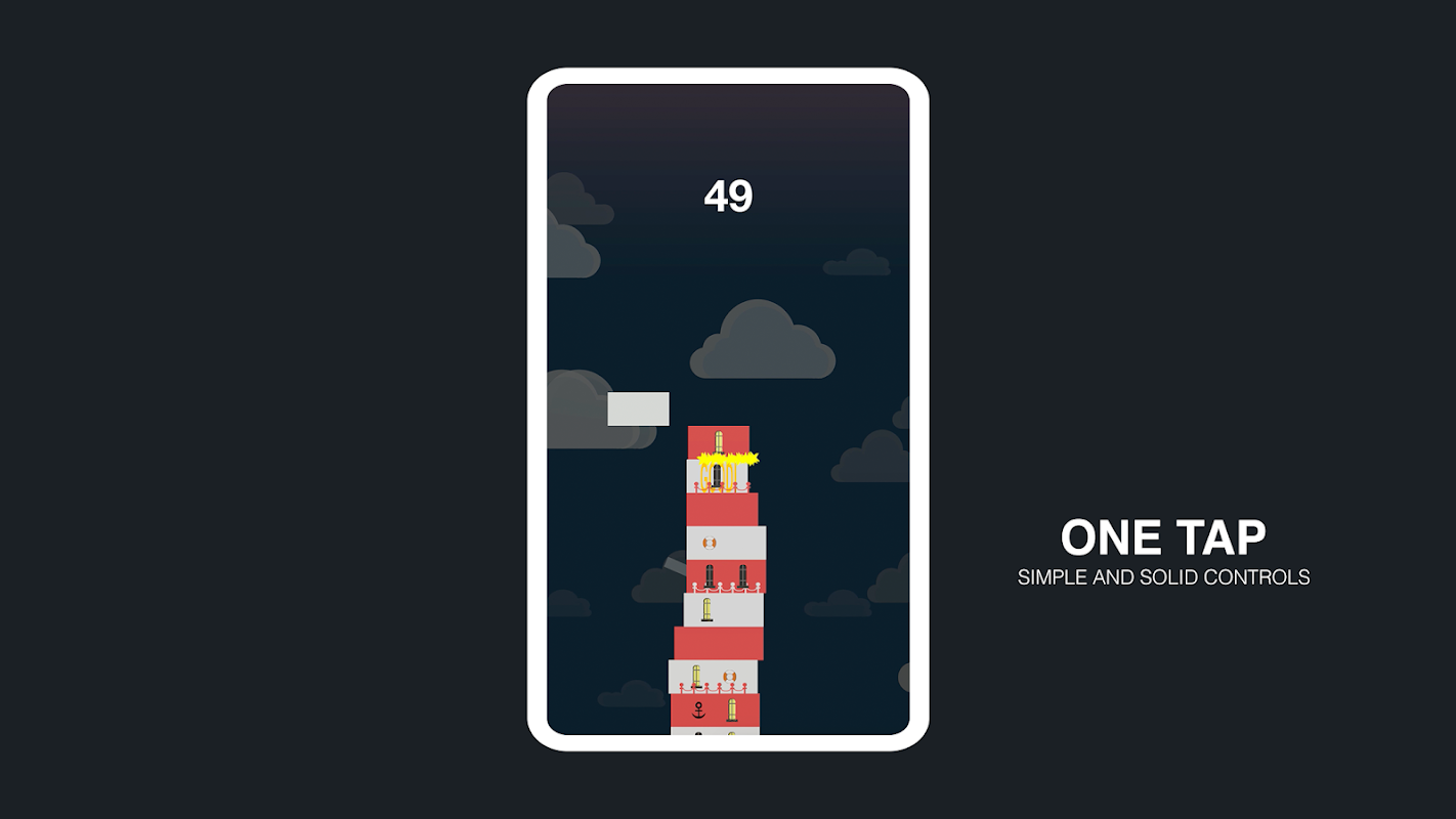 Tap on the Screen to drop a Piece on the lighthouse's base. Try to stack the pieces on top of each other.