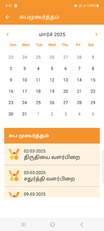 * Month View : Stay updated with important Tamil festivals, Thithi, Subha Muhurtham and Karinaal Dates and other significant days for selected Month .