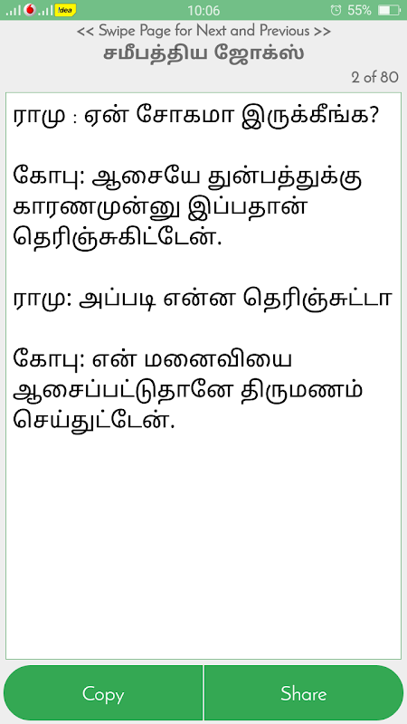 Huge collection of Tamil Jokes and its offline. No need of internet connection