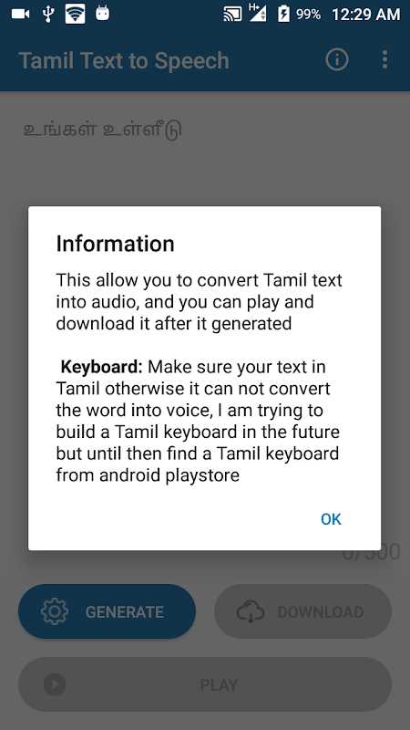 Tamil Text to Speech is text to audio program which allow you to convert Tamil text to audio, you might need a Tamil keybpard beause the text to speech engine only translate Tamil letters