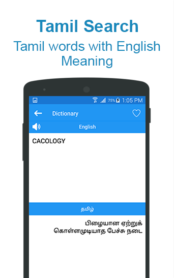 Download this Tamil dictionary and search தமிழ் மொழிக்கு ஆங்கிலம் words meaning and with ease and the best user interface.
