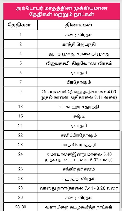 இது தமிழ் பஞ்சாங்கத்தின் அடிப்படையிலான எளிய மற்றும் பிரபலமான தமிழ் நாட்காட்டி, எளிதில் புரிந்துகொள்ளக்கூடிய மற்றும் ஜோதிட ரீதியாக உள்ளது. நல்ல நேரம், ராகுகாலம், ஏமகண்டம், குளிகை மற்றும் விசேஷ நாட்கள் என பின்வரும் வசதிகள் உள்ளன.