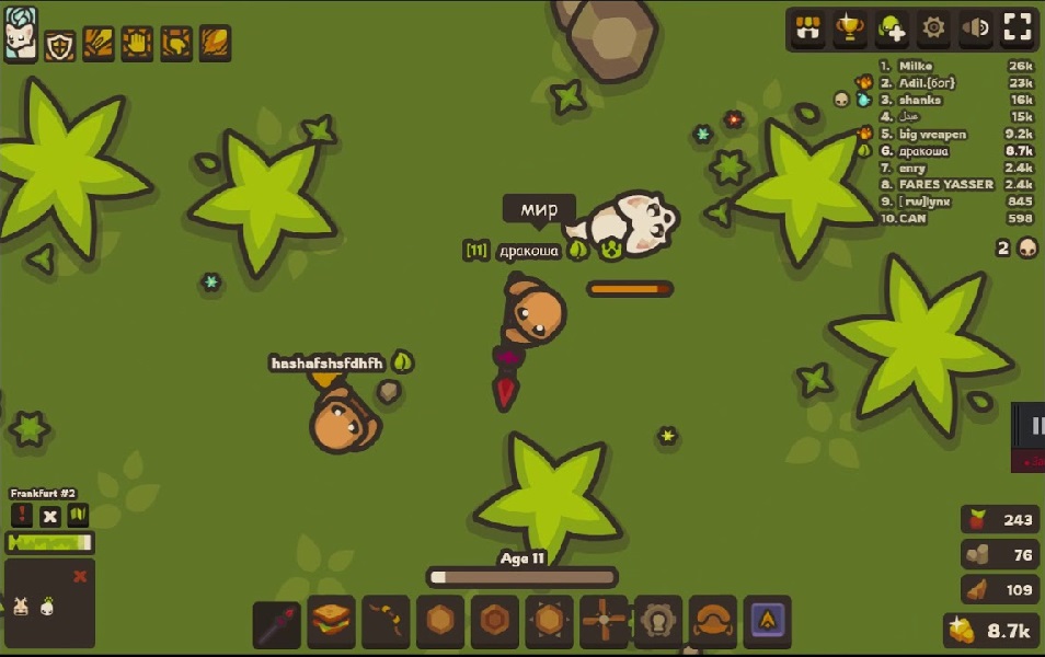 Taming io is a survival .io game with magical pets that fight by your side. Harvest resources and unlock upgrades as you age. Craft items, build a base, and battle other players and their pets to become the savviest survivor.