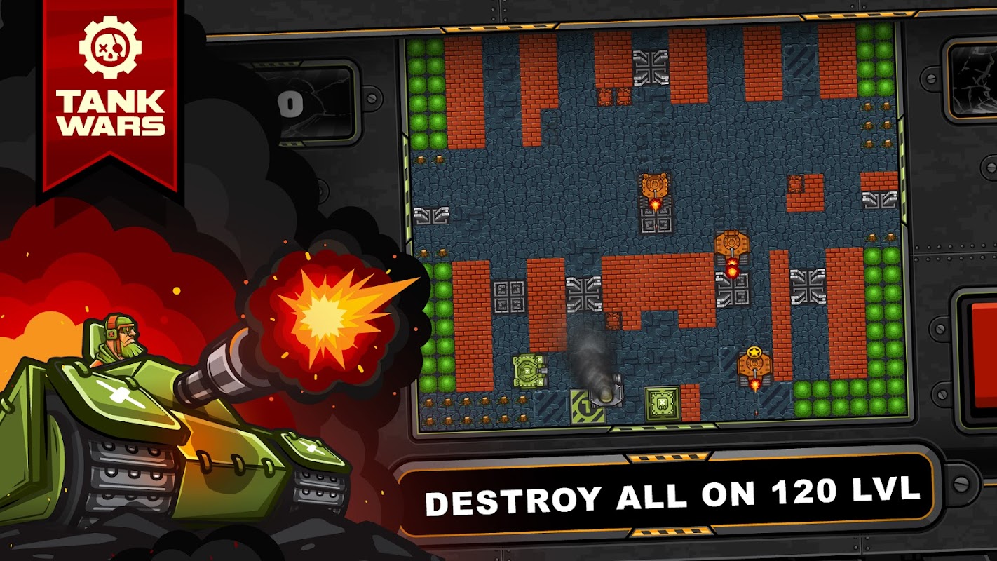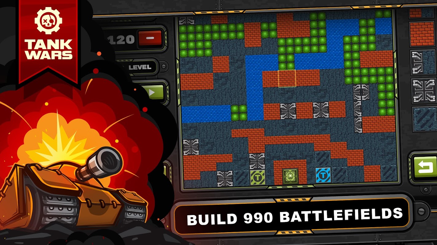 Tank Wars – are good old arcade tanks! In battle, gentlemen! Choose one of the 4 ways to fame, each of which is difficult in its own way, from a calm company to a fretting mincing machine. Fight at 120 polygons alone or with your best friend to win, or create your own 990 battlefields. Attack and destroy enemy armored vehicles to achieve the main goal – victory, but do not forget to defend your base in the heat of battles, its destruction leads to the failure of your entire mission. On the way, there will also meet dangerous mini-bosses, victory over which will not be the easiest walk. For the excellent result shown during the battle, you will be awarded medals and your exploits will not be forgotten and will be recorded. Your opponents are well armed, so try to use both terrain, as camouflage and protection, and bonuses on the battlefield that will help improve weapons, turn enemies into wreckage or water into ice for ferrying. Good luck!