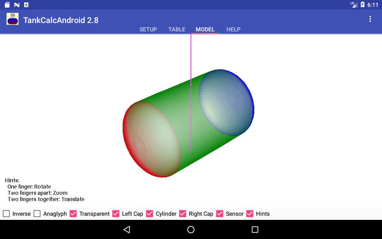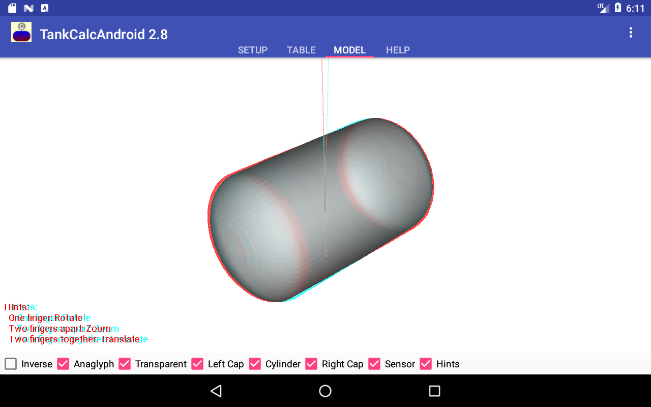TankCalcAndroid is an Android-based version of my well-known storage tank analysis program TankCalc. I created it on hearing from a number of tank farm managers who wanted a more convenient way to analyze storage tanks in the field. This version includes most of the features of the desktop version — the table generator, the 3D viewer, even the anaglyphic true-3D viewing mode. It also has the ability to email its results to a user-provided address.