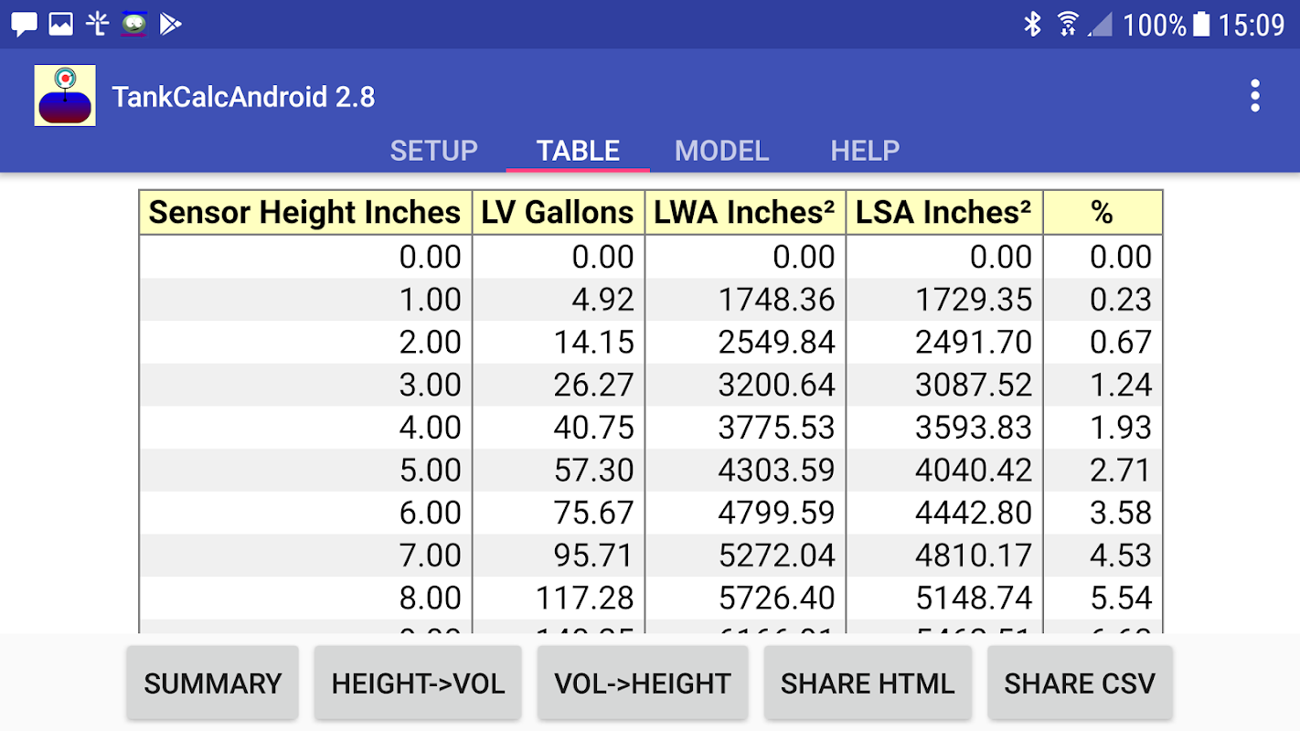 TankCalcAndroid analyzes storage tanks -- incremental volumes, weight, and more.