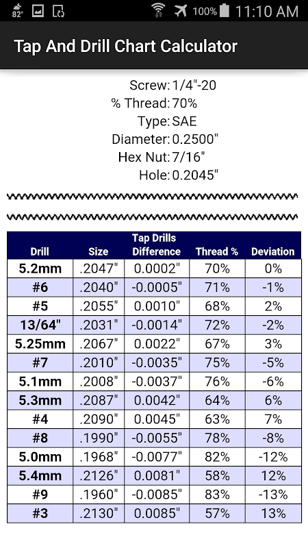 Tap And Drill Chart Calculator 4.2.2
