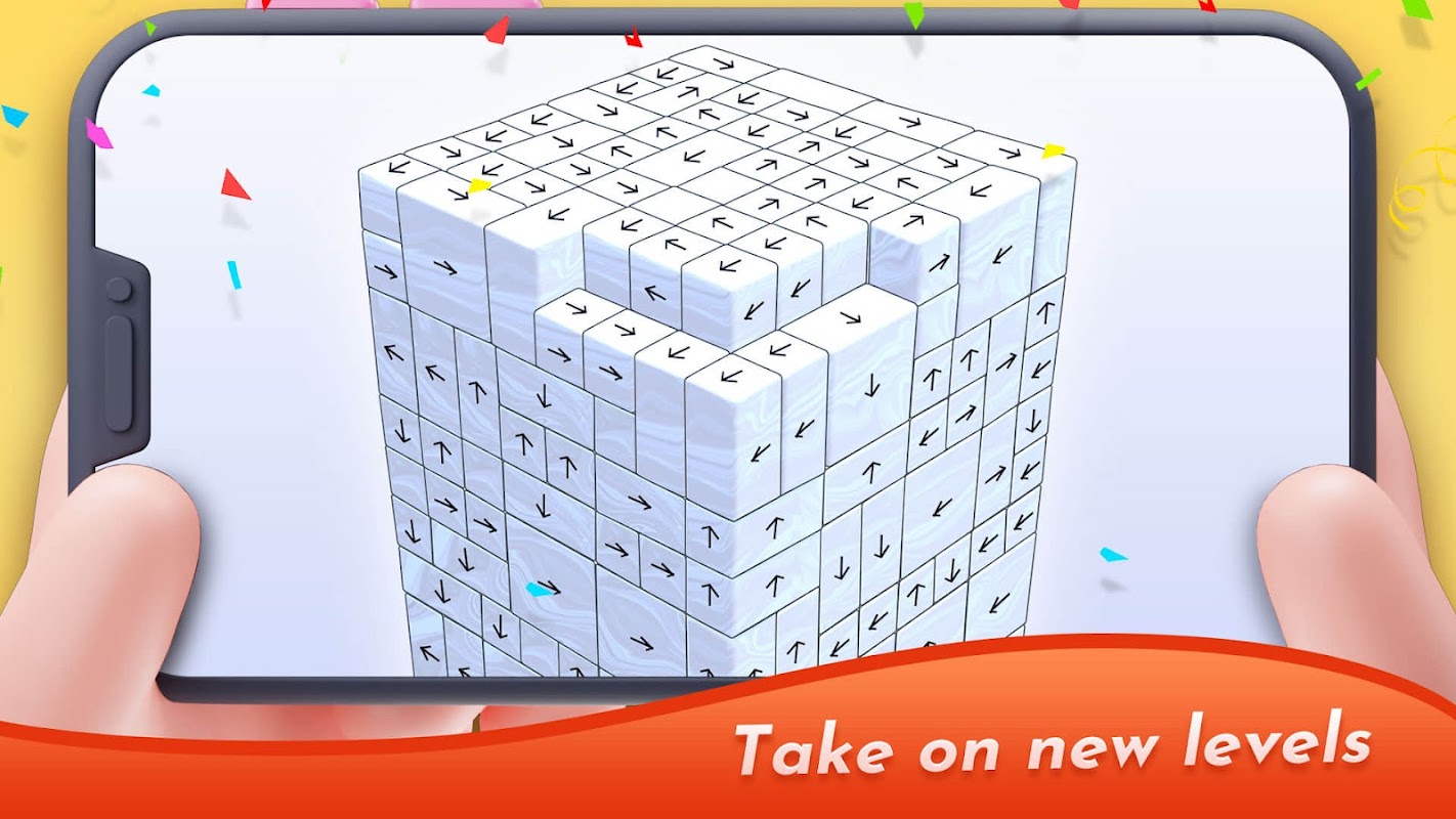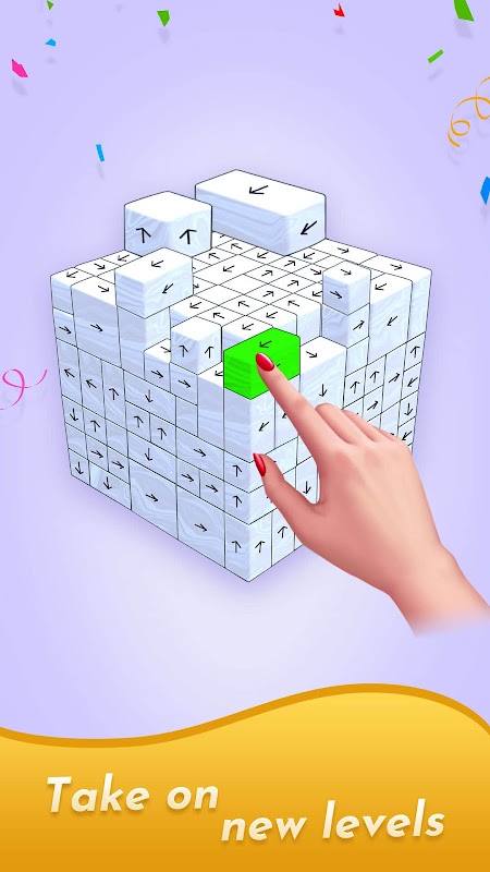 Based on the direction indicated on the blocks, touch the 3D blocks on the screen to make them detach from the others. Since the blocks can only fly in one direction, you need to avoid colliding with other blocks that are still attached. You can rotate the entire screen 360° and think from various angles to achieve victory. Perhaps the props can give you a helping hand, but it's up to your intelligence when you run out of options.