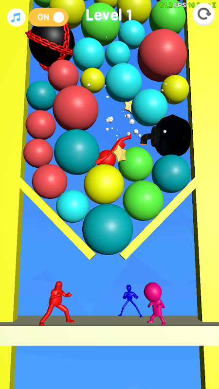 Tap the balls to move the ragdoll to the finish line. Tap bombs strategically!